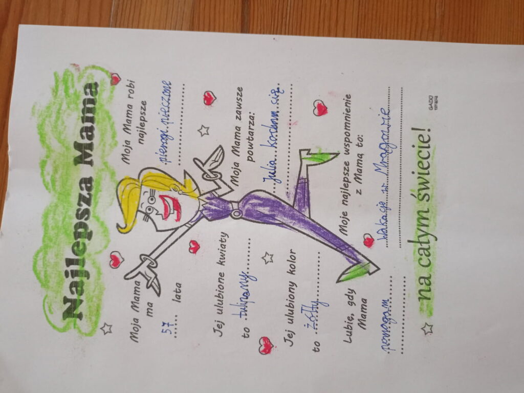 Z okazji Dnia Mamy nasze zajęcia TUS poświęciliśmy rozmowom o… mamach! Zastanawialiśmy się, jakie są – ciepłe, zabawne, troskliwe, czasem zmęczone, ale zawsze obecne. Każda inna, każda wyjątkowa. Rozmawialiśmy o tym, czym się różnią i co najbardziej w nich kochamy. Z tych pięknych myśli powstał wspólny plakat – pełen kolorów, słów prosto z serca i uśmiechów.